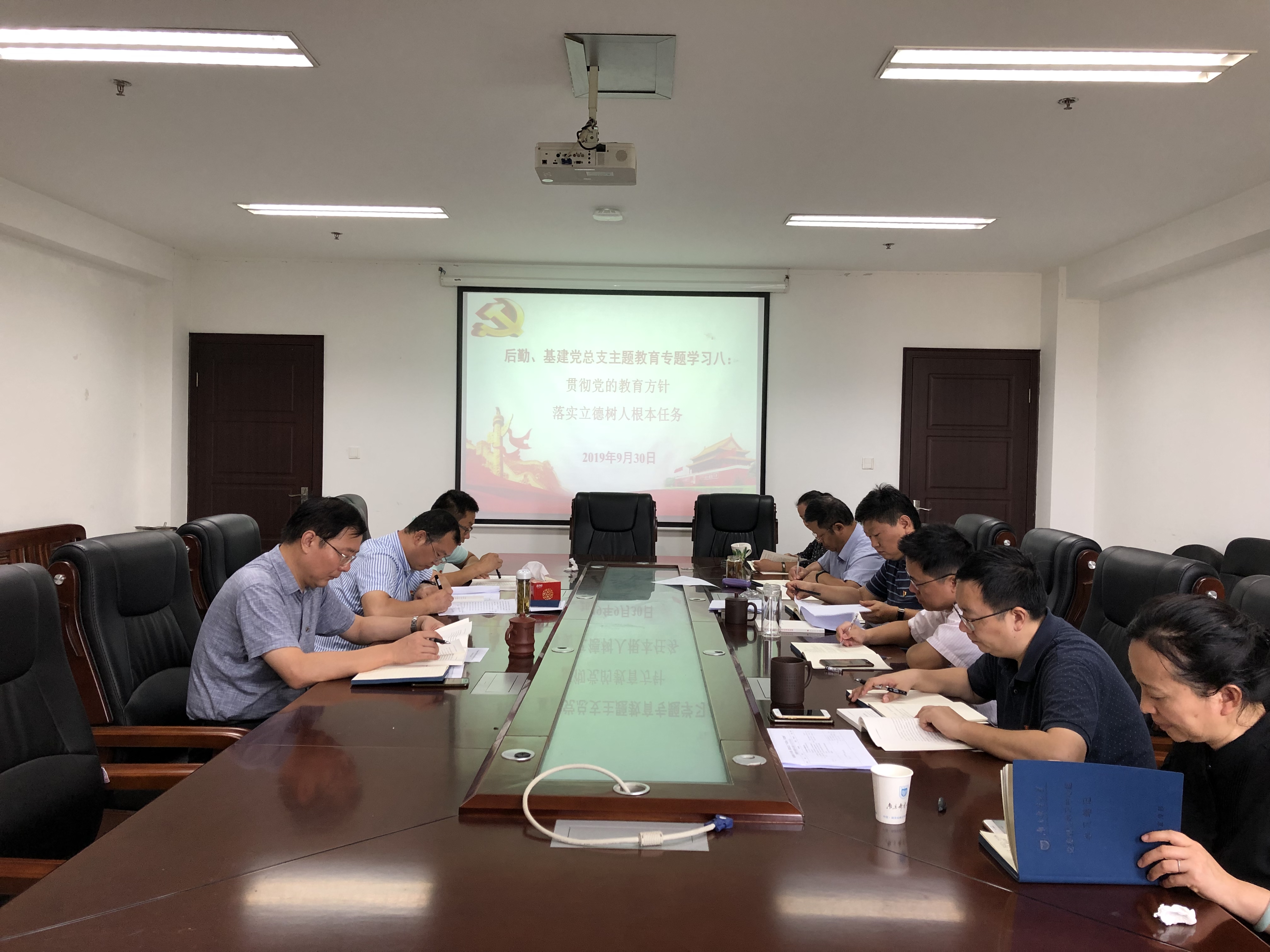 9月30日上午,后勤、基建党总支理论学习中心组在仙林校区大学生事务服务中心四楼409会议室召开“不忘初心、牢记使命”主题教育“贯彻党的教育方针,落实立德树人根本任务”专题学习会。全体党总支理论学习中心组成员参加了会议,会议由党总支书记郭彦铮主持。