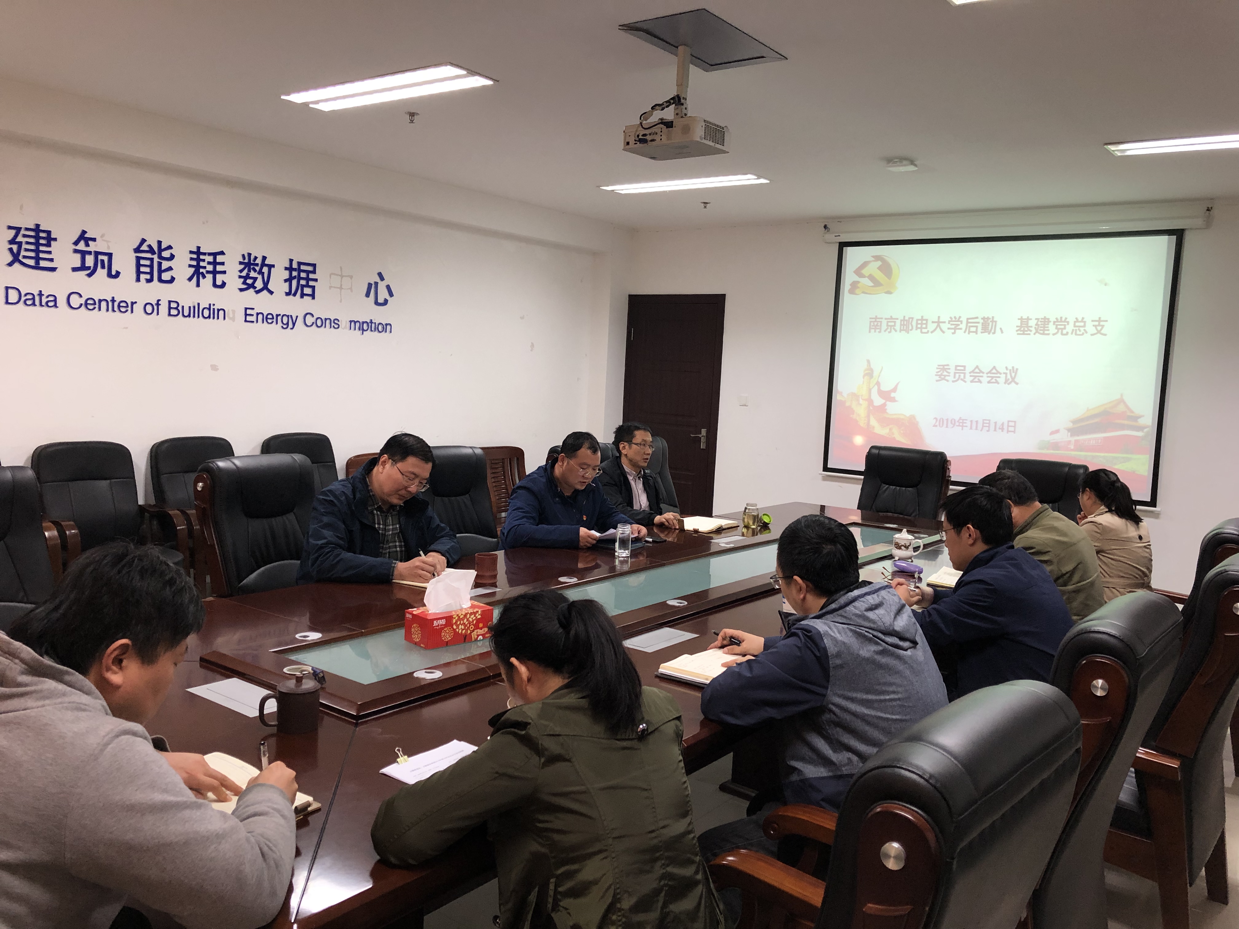 11月14日,后勤、基建党总支委员会在仙林校区学生事务服务中心409会议室召开扩大会议,传达了习近平总书记在党的十九届四中全会上的重要讲话,传达学习了党的十九届四中全会公报、省委领导干部会议精神和学校党委理论学习中心组学习会精神,就迅速掀起学习宣传贯彻党的十九届四中全会精神热潮等工作进行安排部署。党总支委员,后勤管理处、后勤服务集团、基建处处级以上领导干部参加会议,党总支书记郭彦铮主持会议。