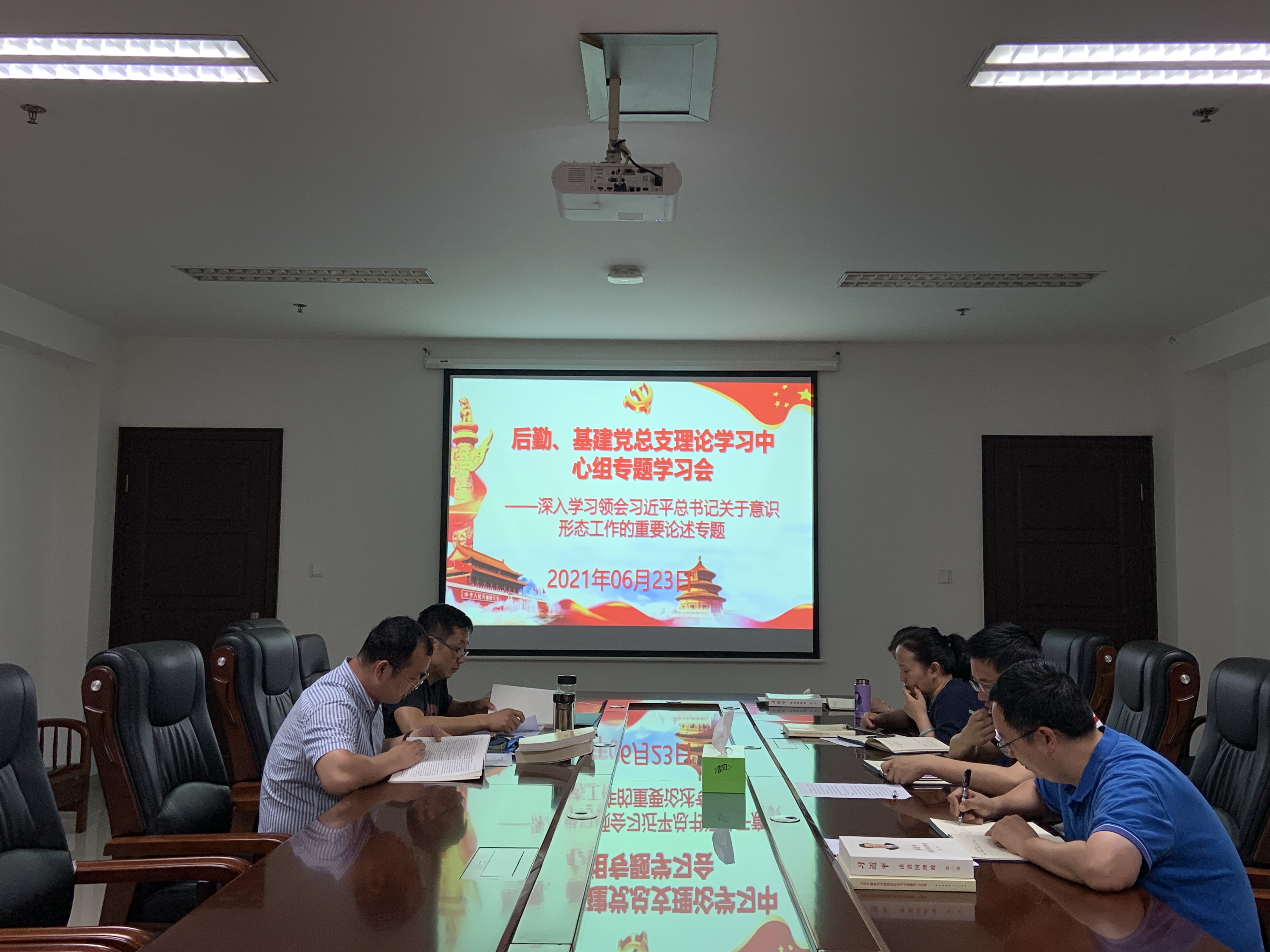6月23日,后勤、基建党总支理论学习中心组在仙林校区学生事务服务中心四楼409会议室,专题学习习近平总书记关于意识形态工作的重要论述。后勤、基建党总支理论学习中心组成员参加会议,会议由党总支书记郭彦铮主持。