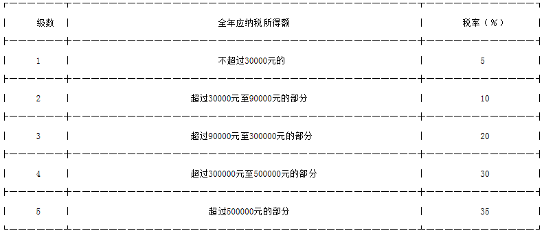 (注:本表所称全年应纳税所得额是指依照本法第六条的规定,以每一纳税年度的收入总额减除成本、费用以及损失后的余额。)