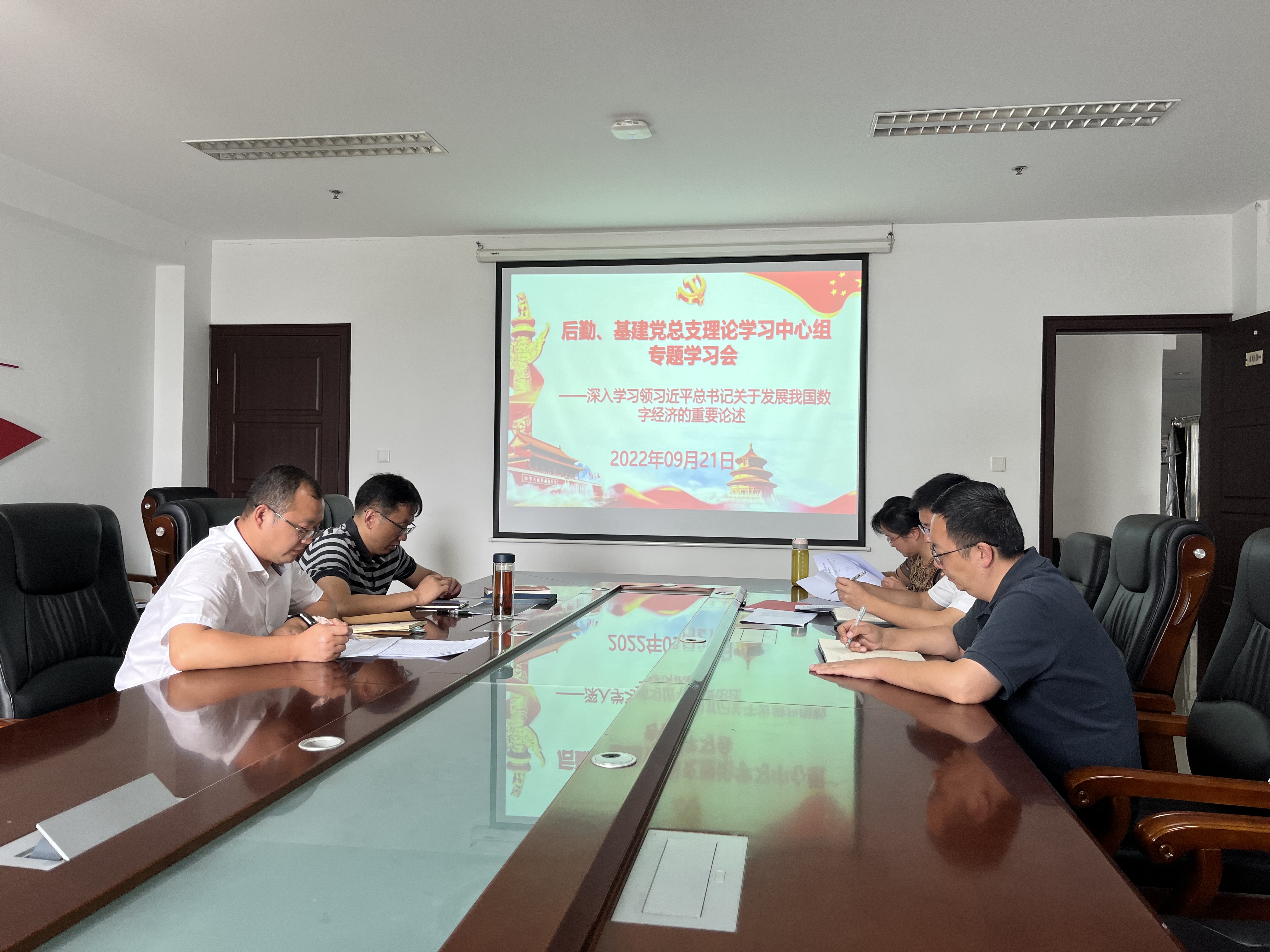 近日,后勤、基建党总支理论学习中心组在仙林校区学生事务服务中心四楼409会议室,专题学习习近平总书记关于我国数字经济的重要论述。后勤、基建党总支理论学习中心组成员参加会议,会议由党总支书记郭彦铮主持。