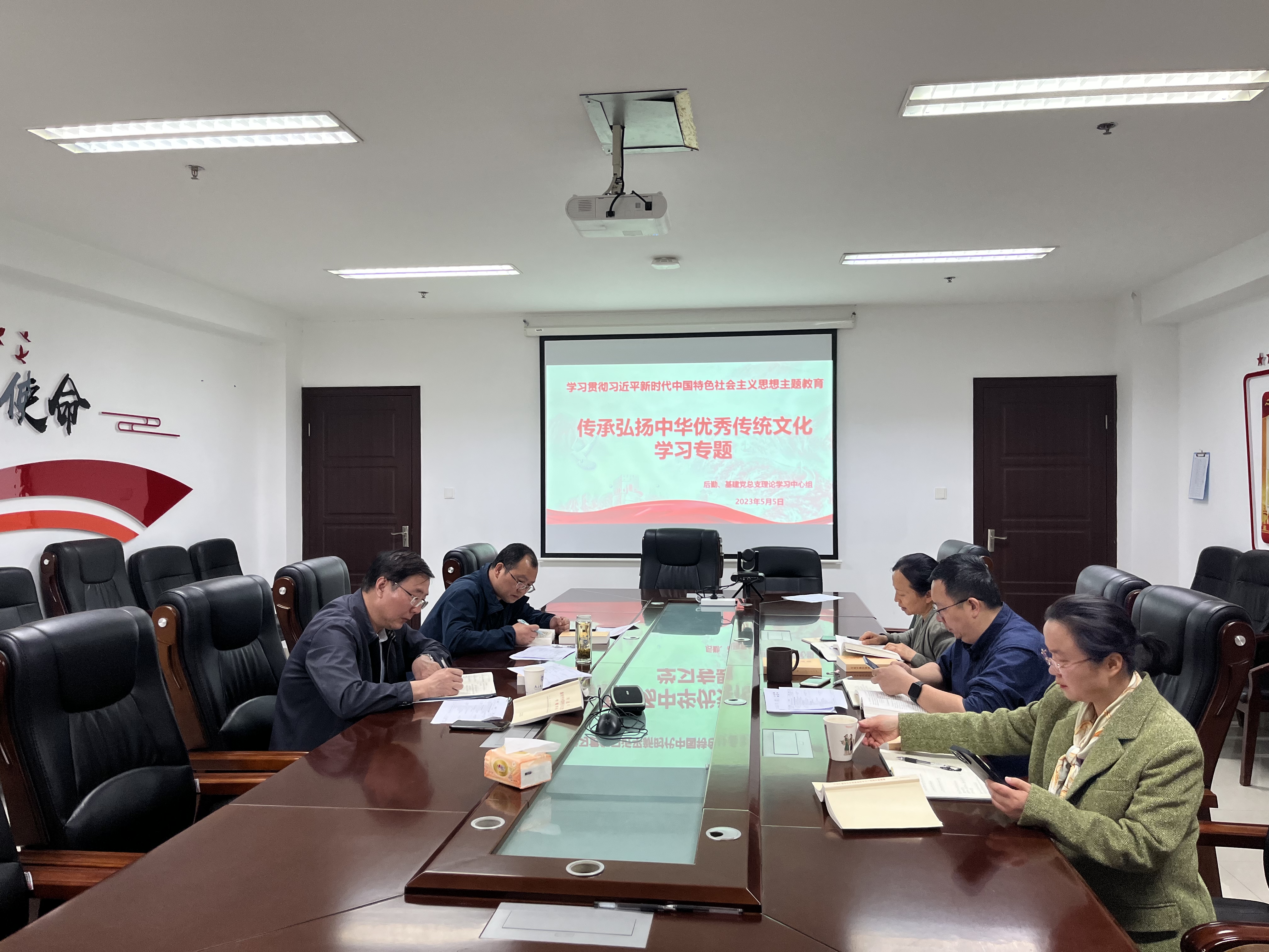5月10日上午,后勤、基建党总支理论学习中心组在仙林校区学生事务服务中心409会议室召开学习贯彻习近平新时代中国特色社会主义思想主题教育“传承弘扬中华优秀传统文化”专题学习会。党总支理论学习中心组全体成员参加了会议,会议由党总支书记郭彦铮主持。