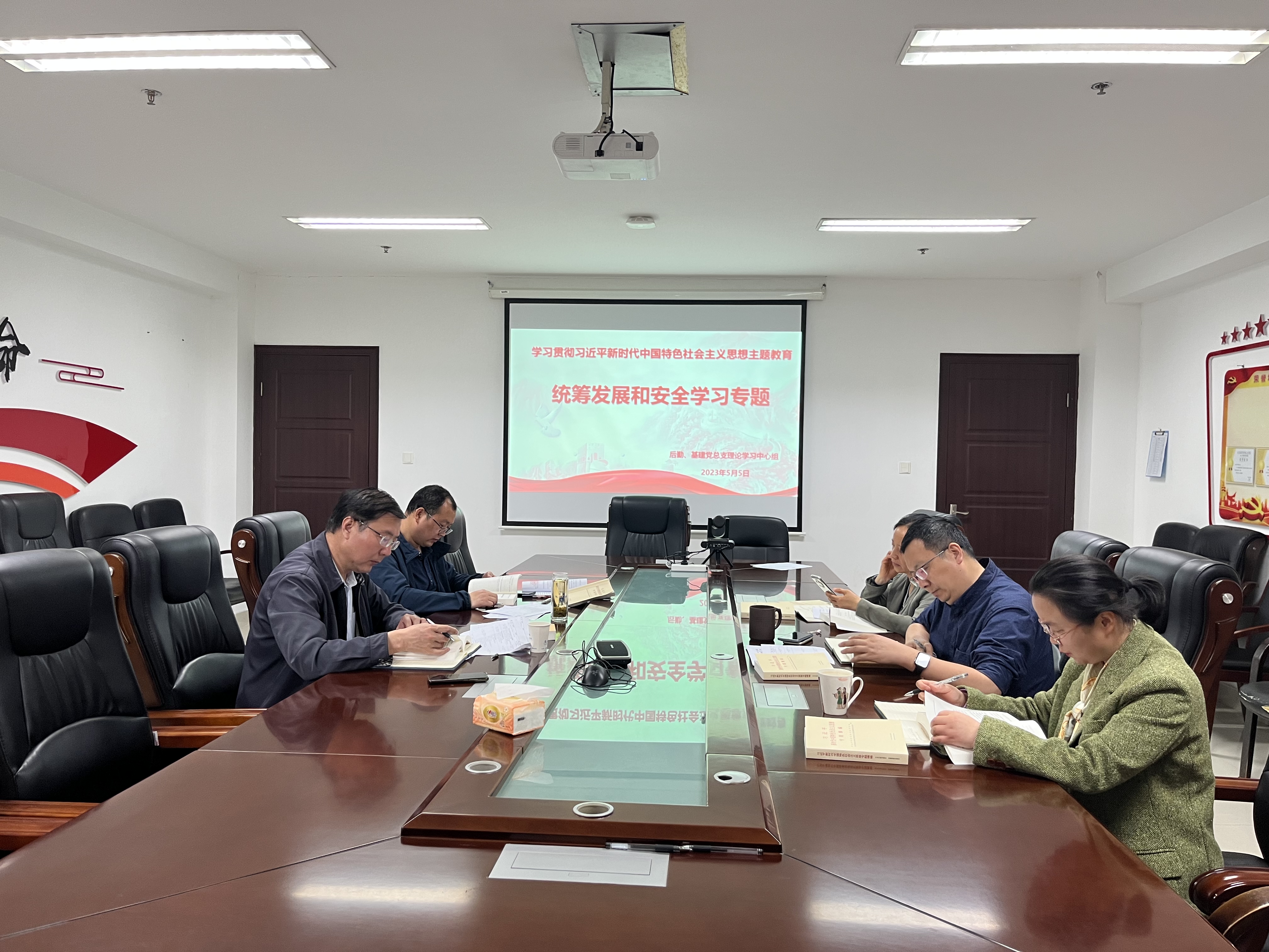 5月10日上午,后勤、基建党总支理论学习中心组在仙林校区学生事务服务中心409会议室召开学习贯彻习近平新时代中国特色社会主义思想主题教育“统筹发展和安全”专题学习会。党总支理论学习中心组全体成员参加了会议,会议由党总支书记郭彦铮主持。